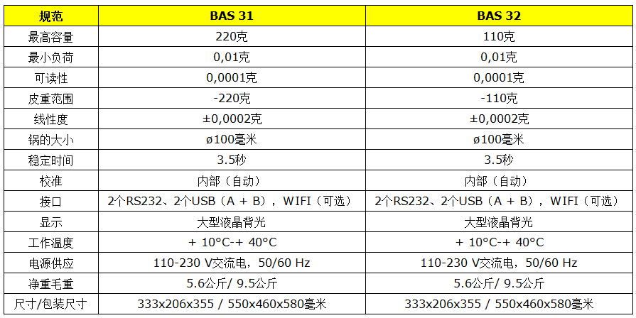 BAS加強型電子天平功能: