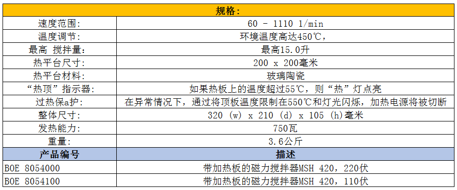 加熱板420磁力攪拌器參數(shù):