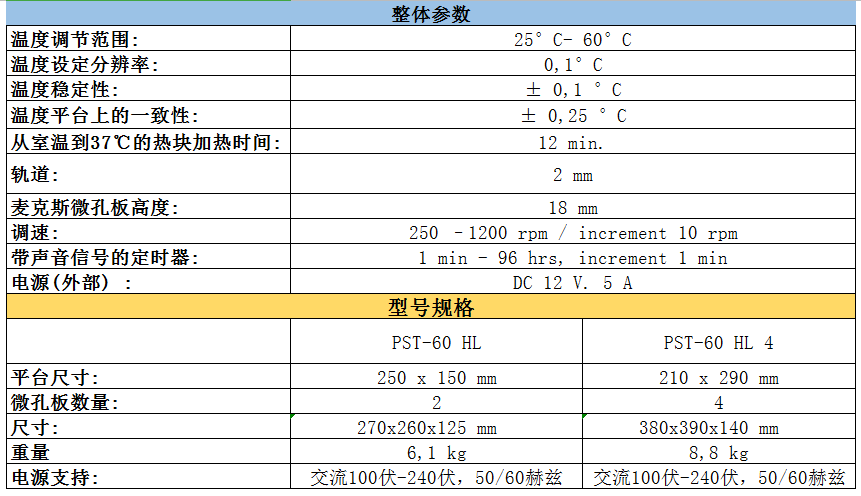 PST-60 HL振蕩培養(yǎng)箱參數(shù):